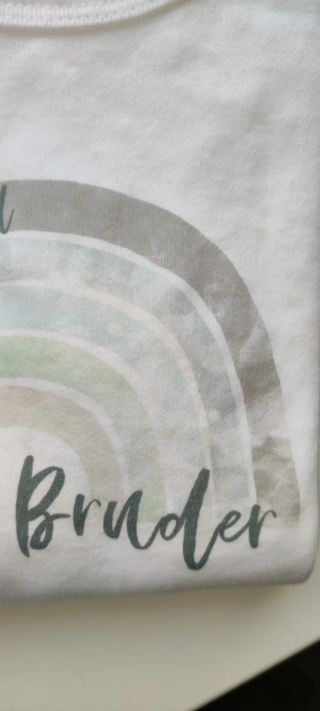 Unser Regenbogen-Motiv im zarten Aquarell-Stil gibt es auch als liebevolles Geschwistershirt – perfekt abgestimmt auf das Geburtstagsshirt. So entsteht ein wunderschöner Partnerlook für große Geschwister, die an diesem besonderen Tag natürlich genauso stolz dabei sind.