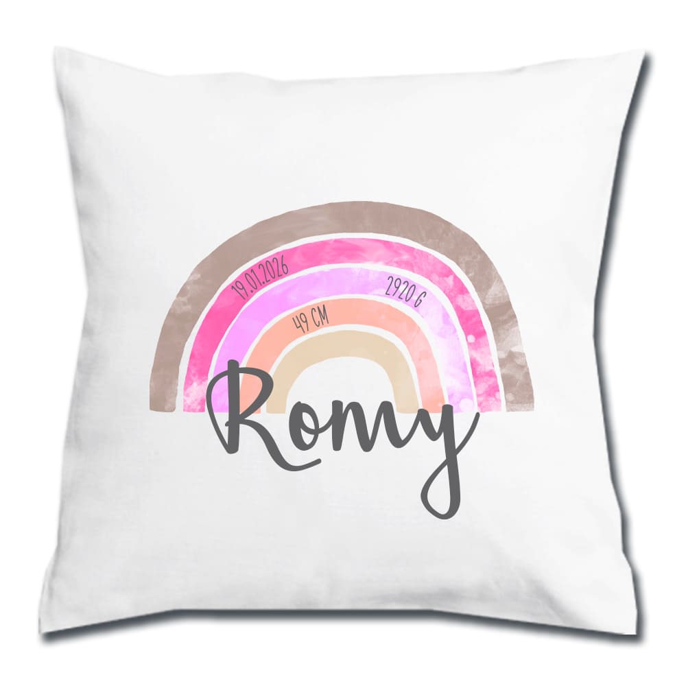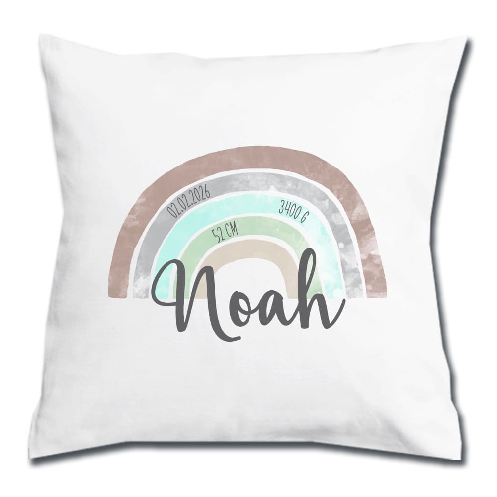 Namenskissen 40 x 40 cm aus weißem Canvas, mit hochwertigem Druck veredelt. Hergestellt in Deutschland.
