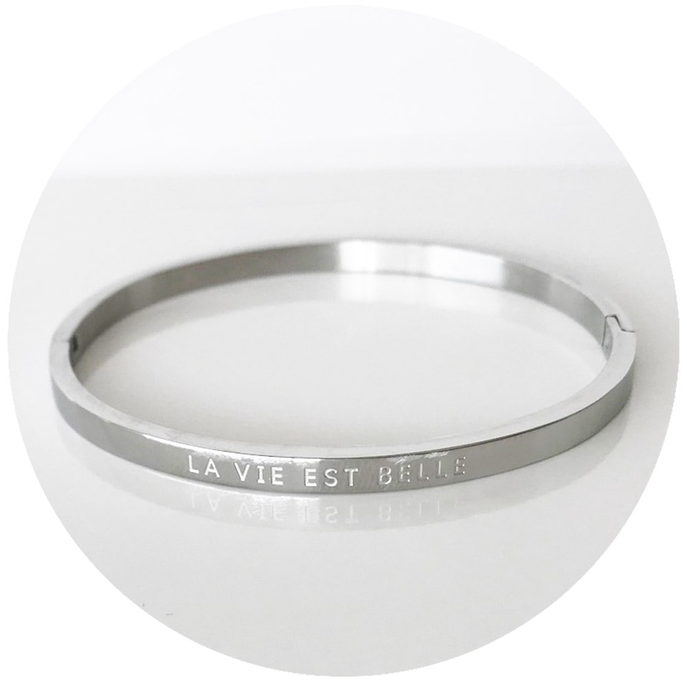 Ja, das Leben ist schön! Toller, massiver Armreif aus Edelstahl mit dem schönen Motto: La vie est belle.
