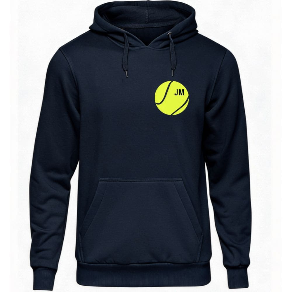 Deine Initialen integrieren wir dezent in den stilvollen Tennisball-Druck – so wird aus jedem Hoodie ein hochwertiges, persönliches Statement-Piece.