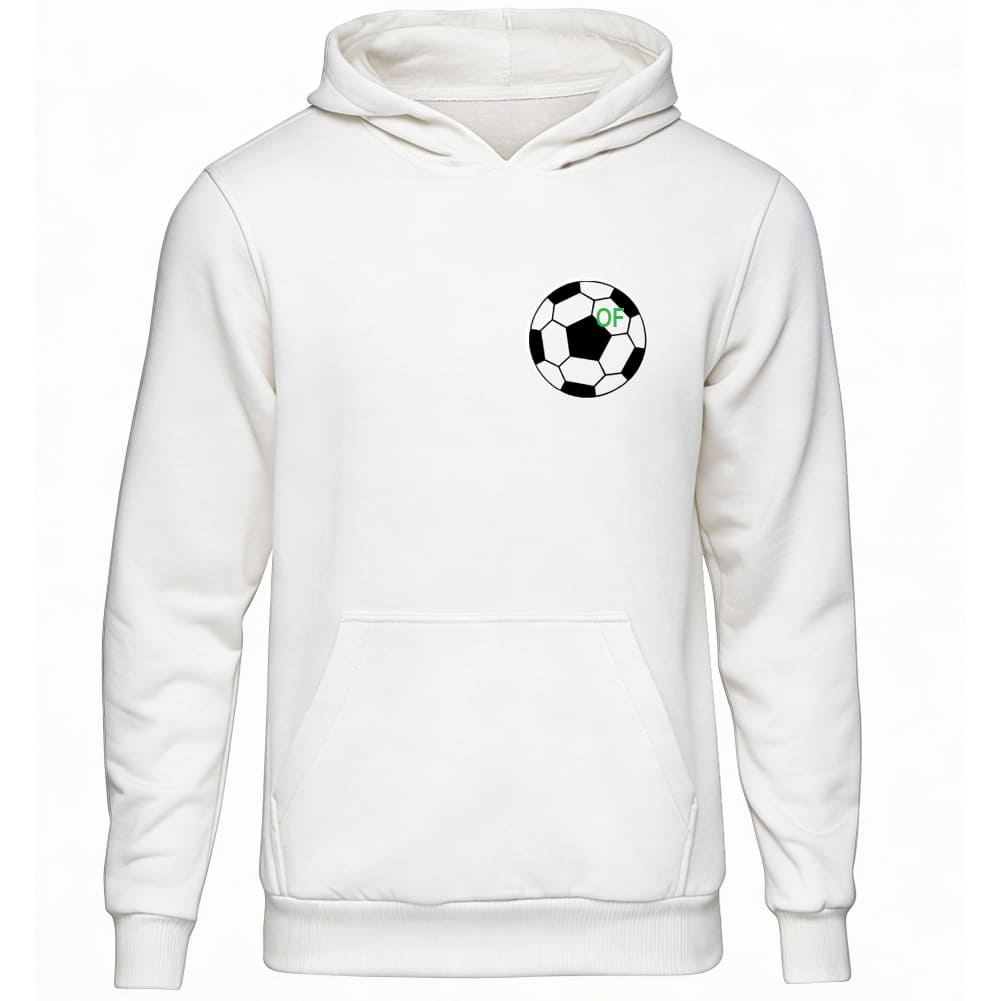 Die Initialen werden dezent in das Fußball-Motiv integriert und machen jeden Hoodie zu etwas ganz Persönlichem – schlicht, kindgerecht und individuell.