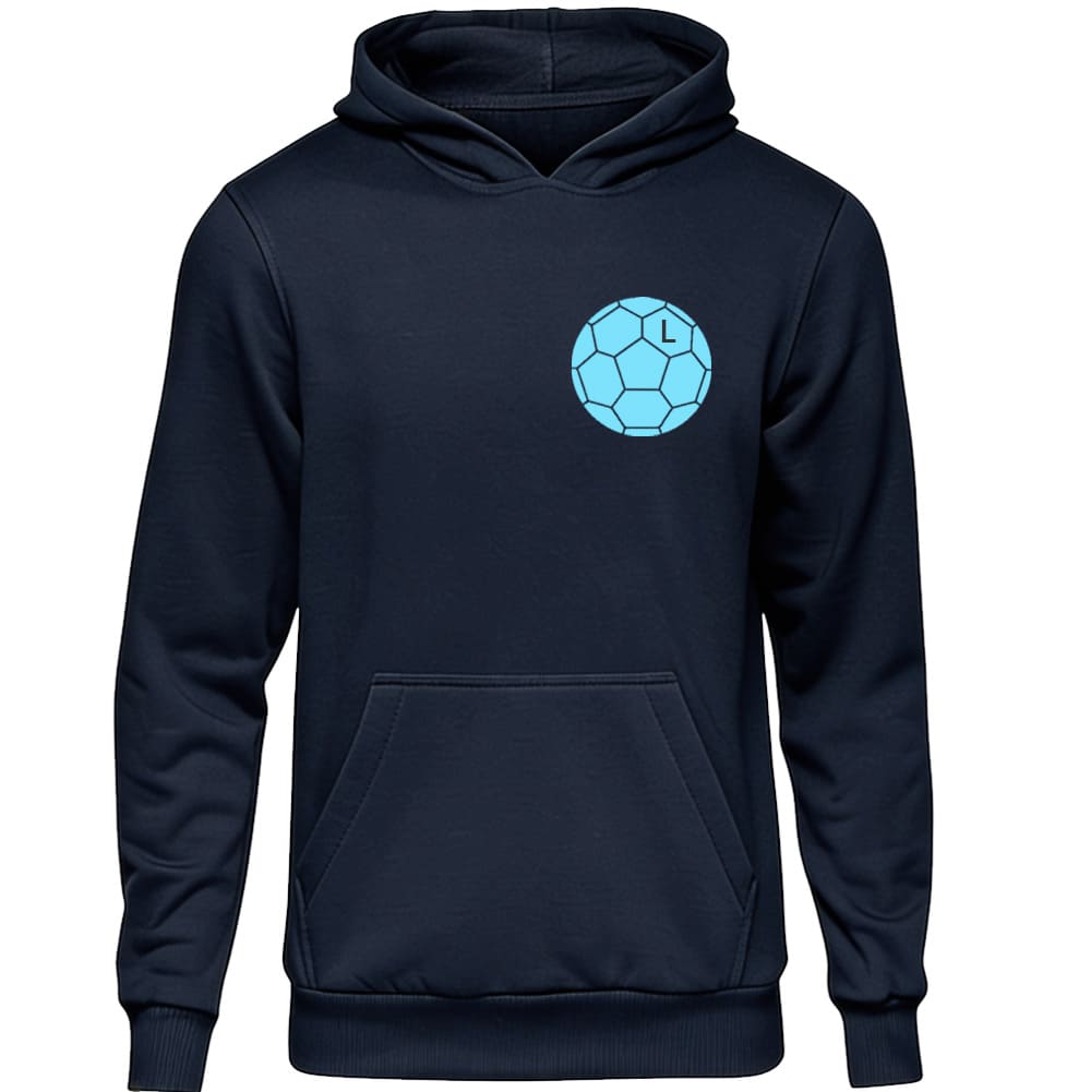 Die Initialen des Kindes werden dezent in den Handball-Print eingearbeitet. So wird jeder Hoodie zu etwas ganz Persönlichem – individuell, schlicht und kindgerecht.