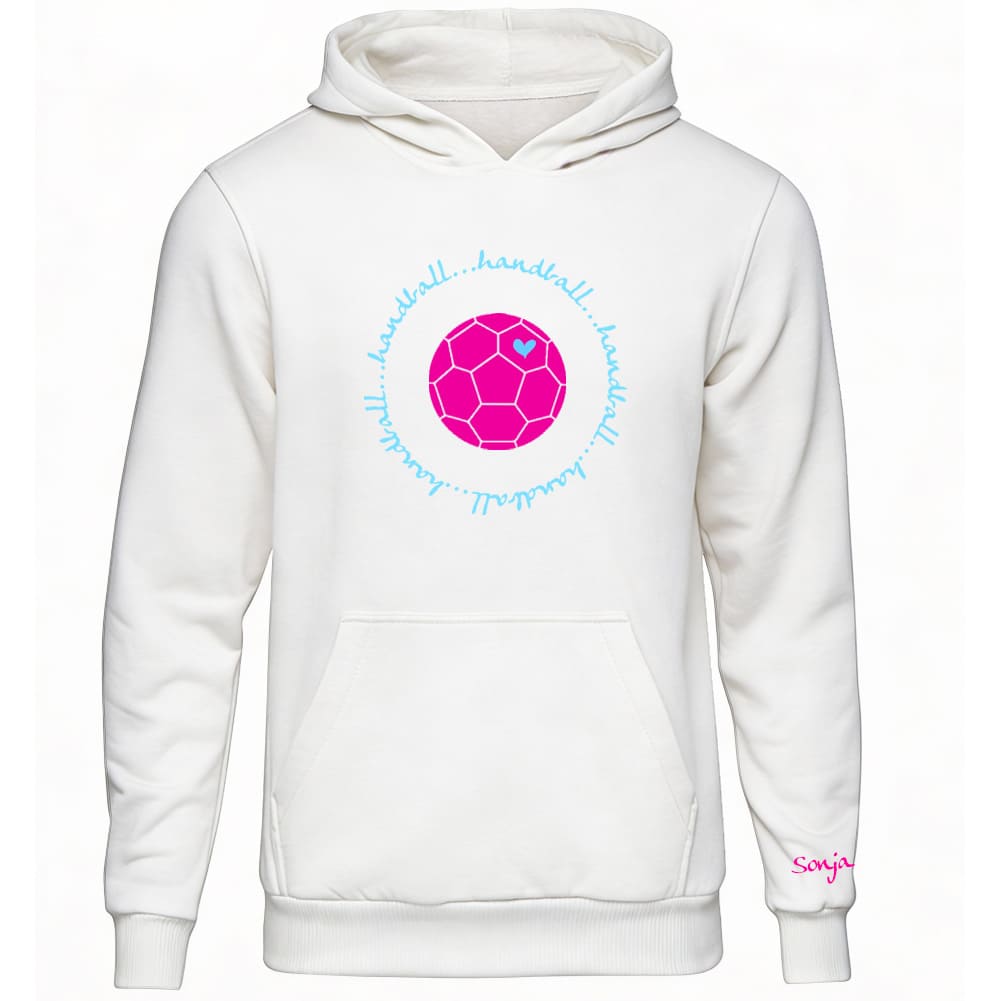 Der Handball steht mittig, ergänzt durch ein kleines Herz. Der umlaufende Schriftzug handball gibt dem Motiv einen sportlichen, klaren Charakter.